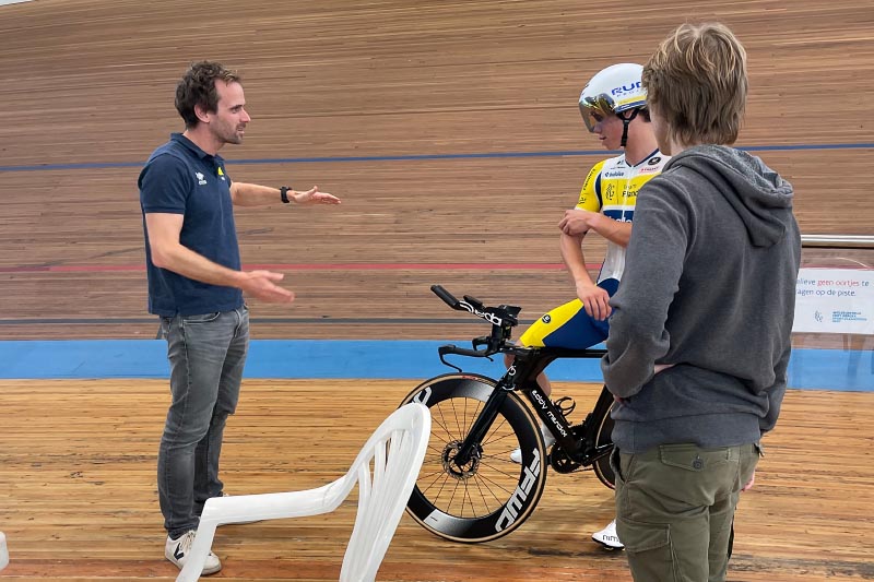 Afgelopen vrijdag trokken we met zes renners naar de overdekte wielerpiste van het Vlaams Wielercentrum Eddy Merckx in Gent voor een sessie aerodynamische testen. Met deze “aero-tests” ligt de focus volledig op de optimalisatie van de positie. Onder begeleiding van physical coach Ward Vande Capelle (Golazo Energy) en ploegleiders Hans De Clercq en Andy Missotten werd er gesleuteld aan positie, houding en materiaal.